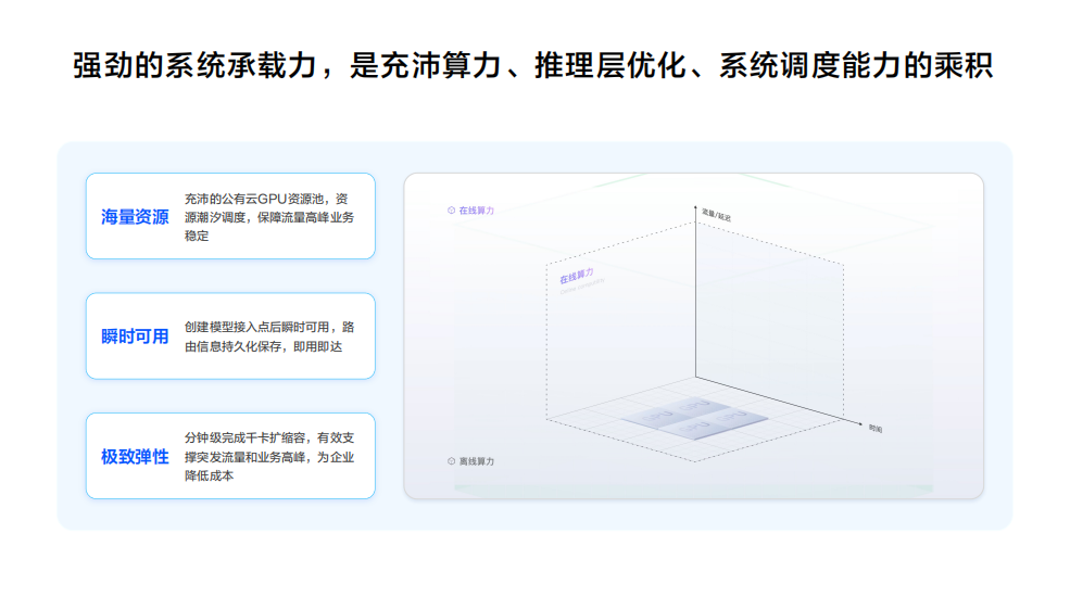 强劲的系统承载力,是充沛算力、推理层优化、系统调度能力的乘积